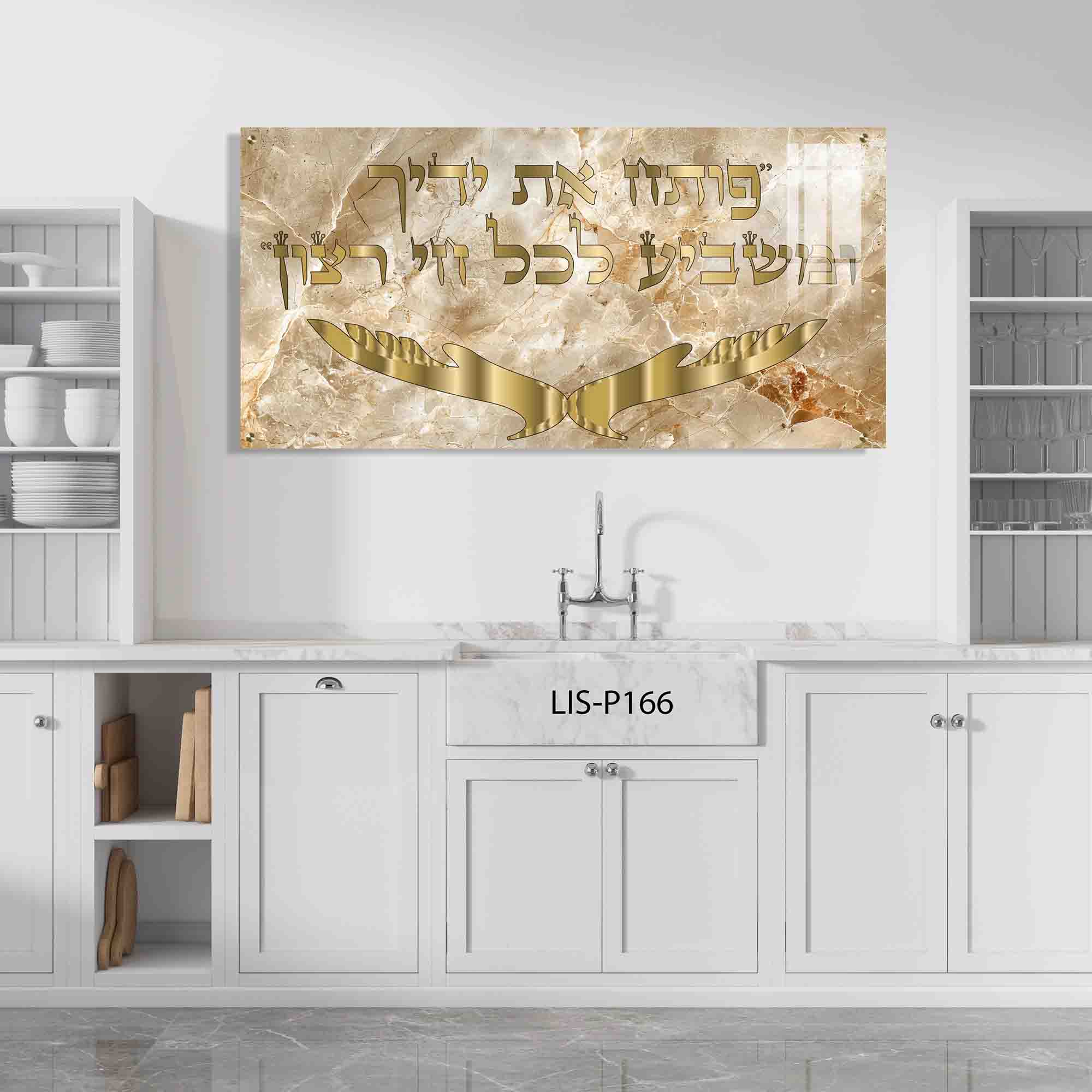 תמונת זכוכית "פותח את ידייך" ברקע שיש זהב – דגם LIS-P166