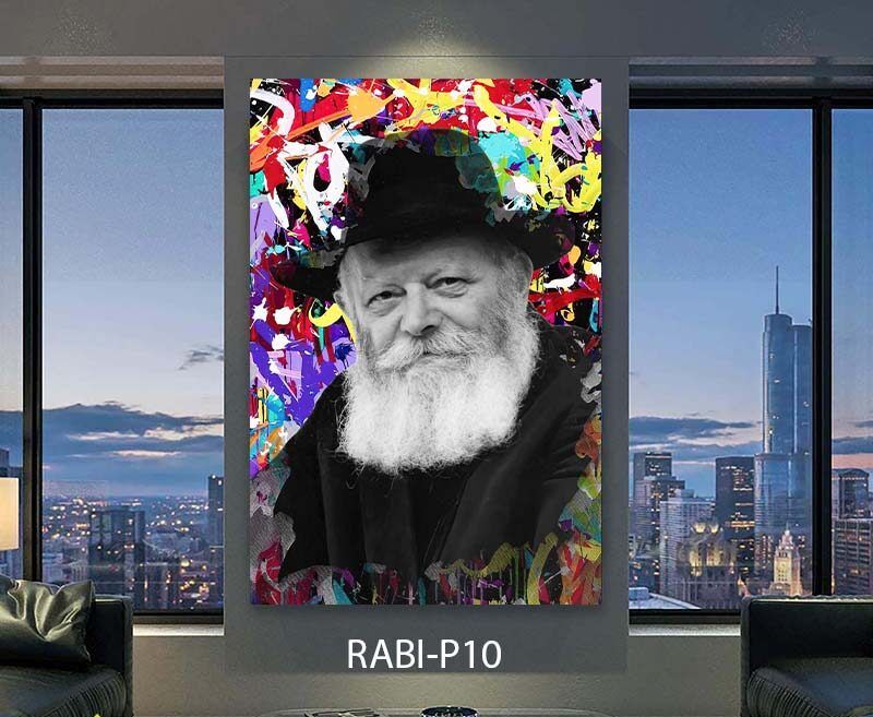 הרבי מלובביץ' מוכר כמנהיג ודמות משפיעה ביהדות המודרנית, וכסמל לאהבת ישראל וחיבור עמוק לתורה ולקהילה. הצגת דמותו בעיצוב עדכני וצבעוני הופכת את התמונה ליצירה שמכניסה אנרגיה חיובית וחיבור למסורת באופן עכשווי ומושך עין.
