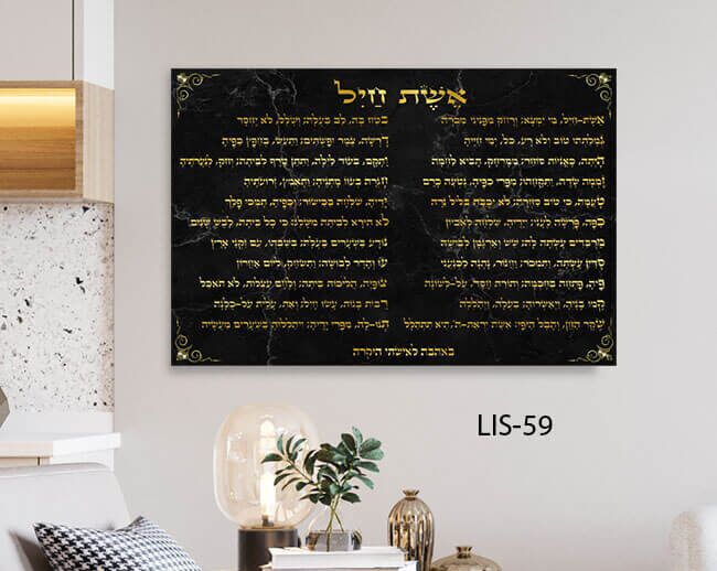 תמונת זכוכית "אשת חיל" בכתב זהב – דגם LIS-59