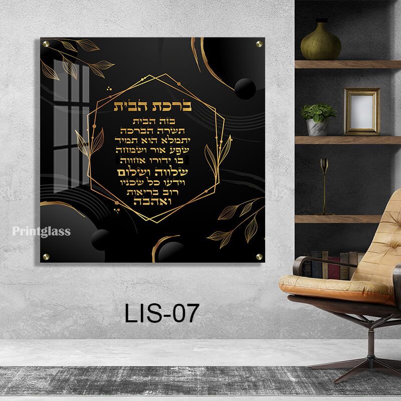 תמונת זכוכית "ברכת הבית" בכתב זהב – דגם LIS-07