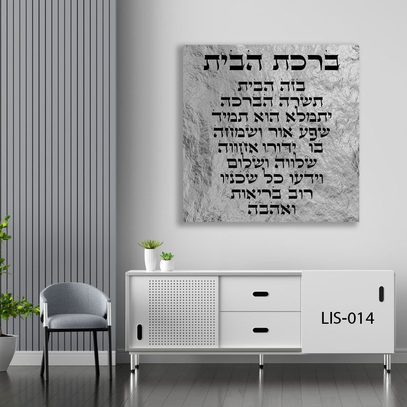 תמונת זכוכית "ברכת הבית" ברקע אפור שיש – דגם LIS-014