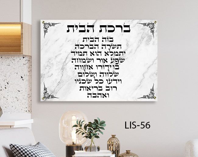 תמונת זכוכית "ברכת הבית" ברקע שיש אפור – דגם LIS-56
