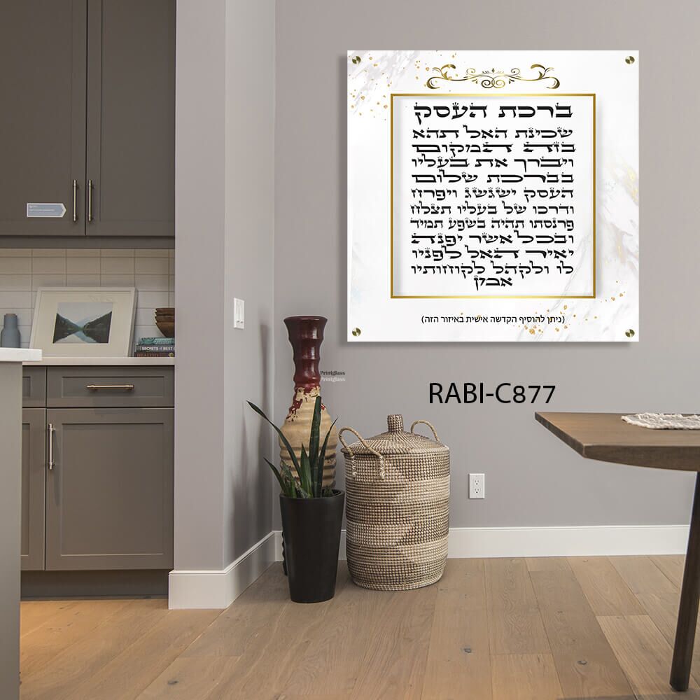 תמונת זכוכית "ברכת העסק" ברקע שיש לבן – דגם RABI-C877