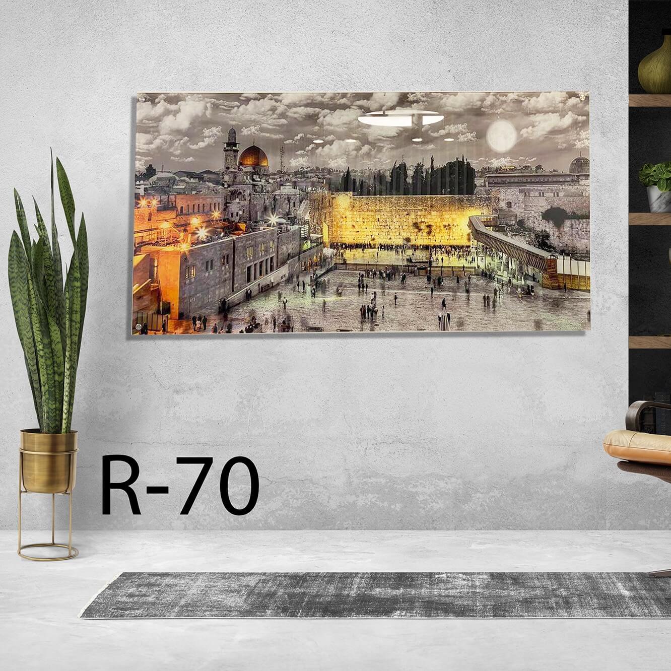 בחרו בדגם R-70 והכניסו לחלל שלכם את הזוהר וההוד של הכותל בשקיעה, בעיצוב זכוכית יוקרתי ועמיד לאורך שנים.