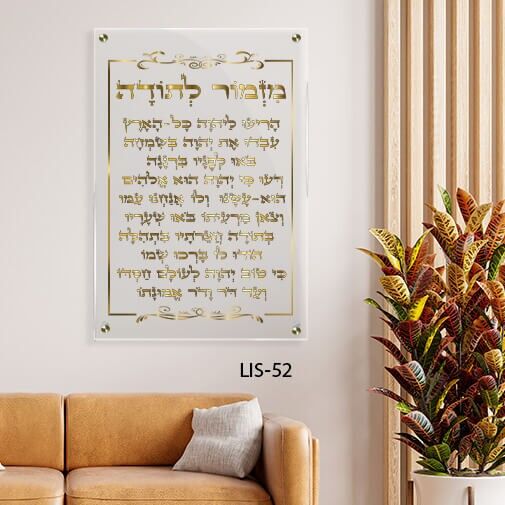 בחרו בדגם LIS-52 ותנו לחלל שלכם נגיעה של יוקרה ומשמעות עם מזמור לתודה בעיצוב שקוף, כתב זהב ומסגרת אלגנטית.