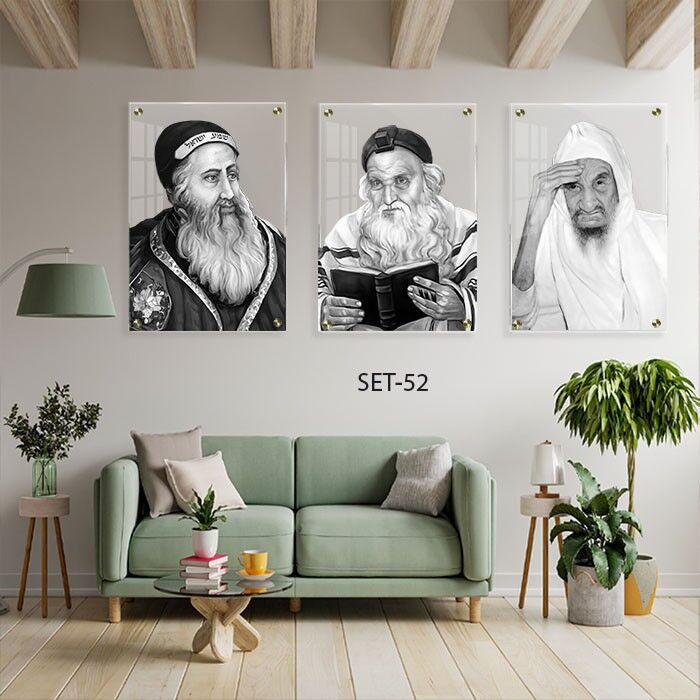 התמונות משלבות מסורת יהודית ודמויות רבנים מעוררות השראה עם עיצוב מודרני ונקי. הרקע השקוף מאפשר התאמה לכל צבעי הקירות, ויוצר פריט עיצובי מרשים שמשדר קדושה ואסתטיקה.
