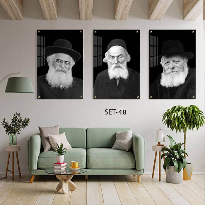הסט משלב בין דמויות רבנים נערצים לעיצוב מינימליסטי ומדויק. הרקע השחור והעיצוב בשחור-לבן מעניקים תחושת עוצמה ורוגע, תוך הוספת מראה ייחודי ומודרני לחלל שלכם.