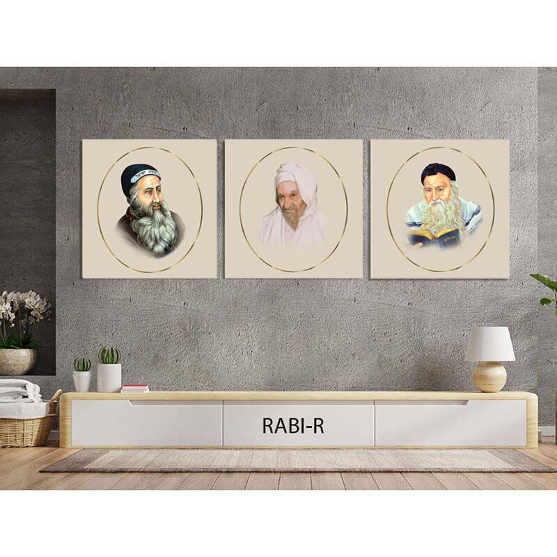 תמונות זכוכית של רבנים ברקע שמנת – סט 3 חלקים – דגם RABI-R-1