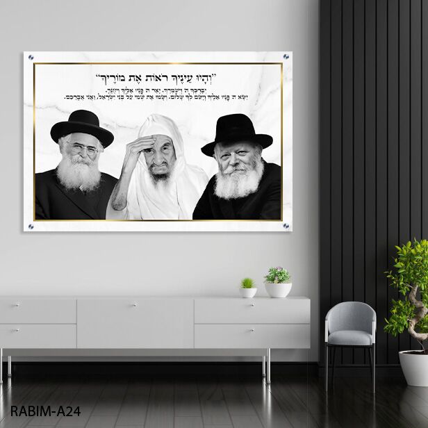 תמונת זכוכית של רבנים ברקע שיש לבן – דגם RABIM-A24