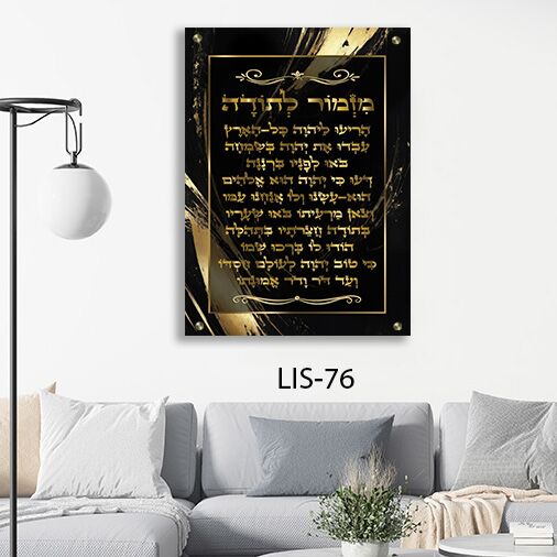 תמונת זכוכית "מזמור לתודה" ברקע שחור עם עיטורי זהב – דגם LIS-76