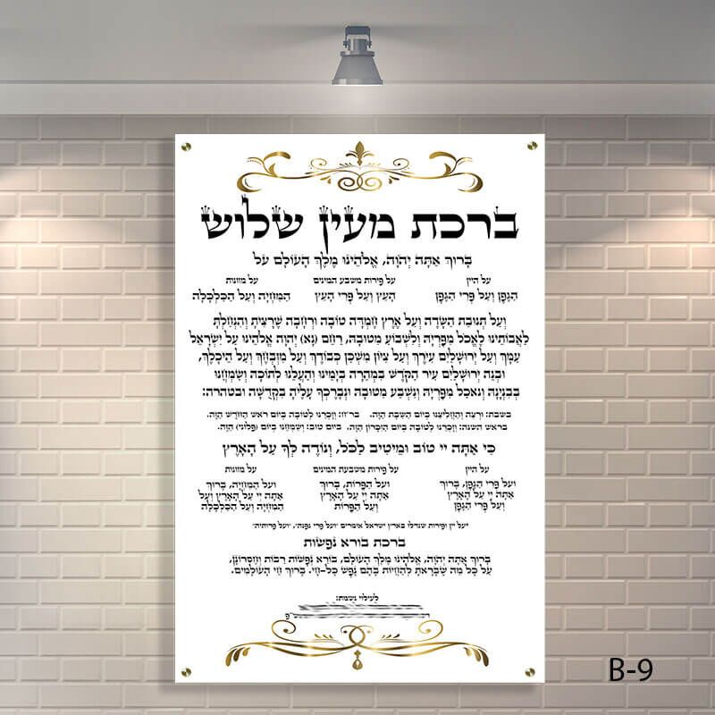 שלט ברכת מעין שלוש – דגם B-9 הוא שילוב מושלם בין תוכן הלכתי חשוב לבין עיצוב מוקפד, עמידות גבוהה ונוכחות מכבדת בבית הכנסת.