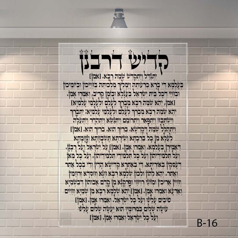 שלט קדיש דרבנן – דגם B-16 משלב עיצוב שקוף, יוקרתי ומודרני עם עומק רוחני מהותי – פתרון מושלם לבית כנסת שמכבד כל מילה של תורה.