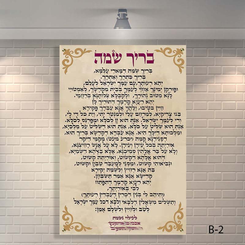 שלט "בריך שמיה" – דגם B-2 מחבר בין עיצוב קלאסי להשראה רוחנית עמוקה – מתאים לכל בית כנסת המעוניין לשלב מסורת, כוונה ויופי במקום אחד.