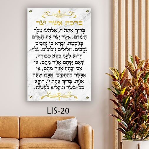 בחרו בדגם LIS-20 והוסיפו לחלל שלכם עיצוב יוקרתי והשראה רוחנית עם ברכת אשר יצר, המוצגת בעיצוב שיש לבן מרשים עם נגיעות זהב.