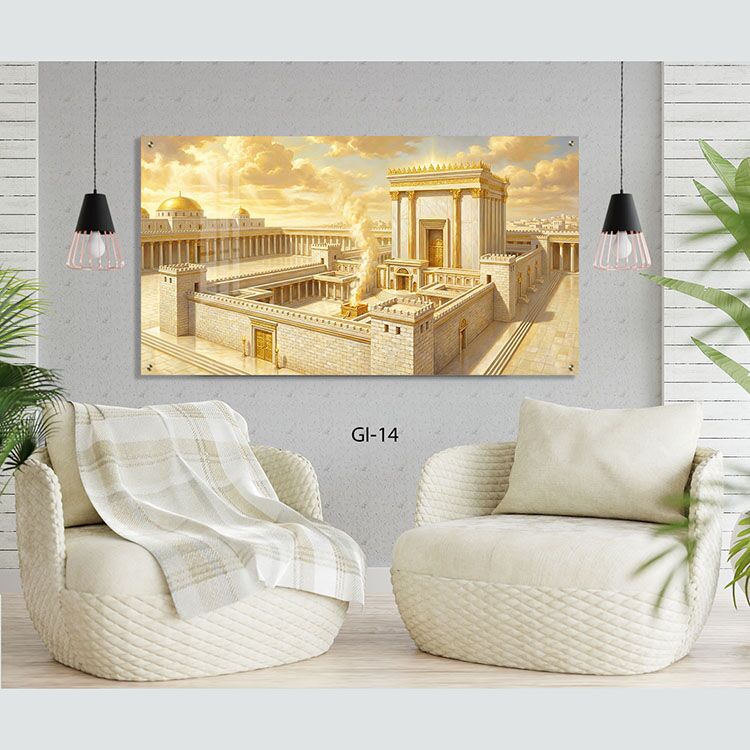 כל בית המקדש תמונה שאנו מייצרים נועדה להוות "זכר למקדש" מפואר, אך דגם זה (GI-14) בולט במיוחד. אם אתם מתעניינים בבית המקדש השלישי תמונות הממחישות את החזון והתקווה, יצירה זו תהפוך לעוגן רוחני ומרכזי בביתכם. התמונה מודפסת בטכנולוגיית תמונה בית המקדש מתקדמת (UV) על גבי זכוכית, המעניקה לגווני הזהב והאבן עומק וברק יוצאי דופן שאינם דוהים, ויוצרת מראה יוקרתי ונקי.