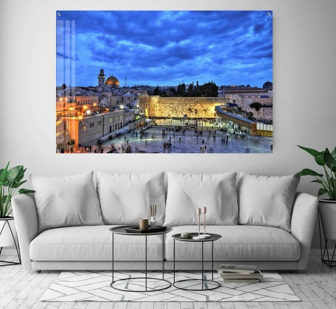 הוסיפו לחלל שלכם זיכרון עוצמתי של קדושת ירושלים ועיצוב אלגנטי עם תמונה מרהיבה של הכותל המערבי בשעות הערב.