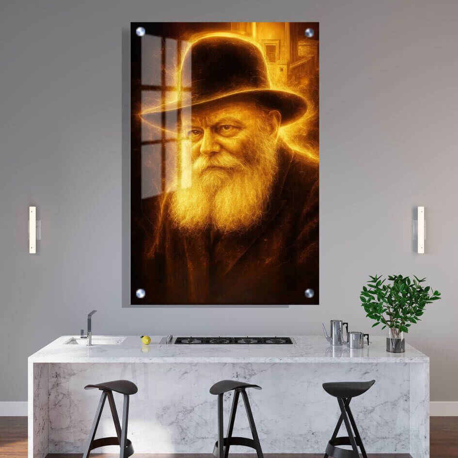 בדיוקן שמכבד את הדמות ומשתלב נפלא עם בית מודרני. בסלון, בפינת אוכל או במסדרון, זו אחת מאותן תמונות צדיקים לסלון שמספקות מוקד שקט ונוכח, כחלק מסדרה רחבה של תמונות של צדיקים מזכוכית.