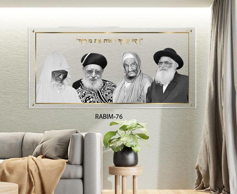 התמונה מהווה שילוב מושלם של מסורת יהודית עם עיצוב מודרני. הרבנים, הרקע השקוף והמסגרת המוזהבת מעניקים תחושת השראה וקדושה, יחד עם מראה יוקרתי שמתאים לכל בית או משרד.