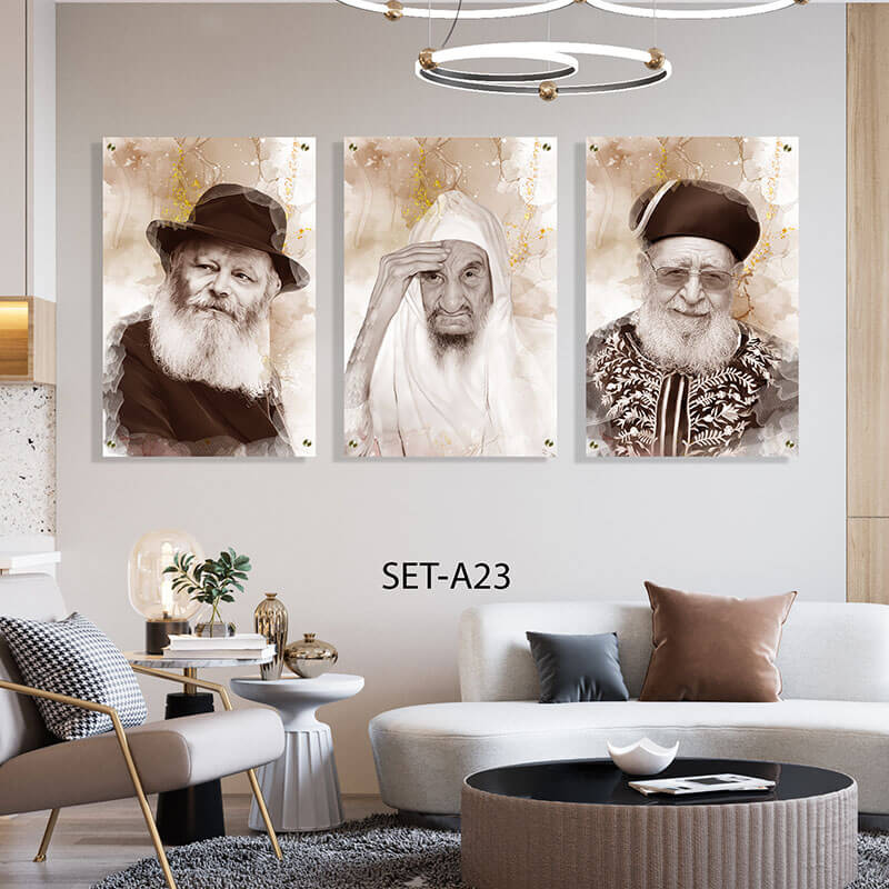 סט SET-A23 מתאים כמתנה מרגשת לחנוכת בית, למשפחה שומרת מסורת, לחדר לימוד או לכל מי שמחפש לשלב בבית תמונות רבנים בעיצוב יוקרתי ומודרני.
