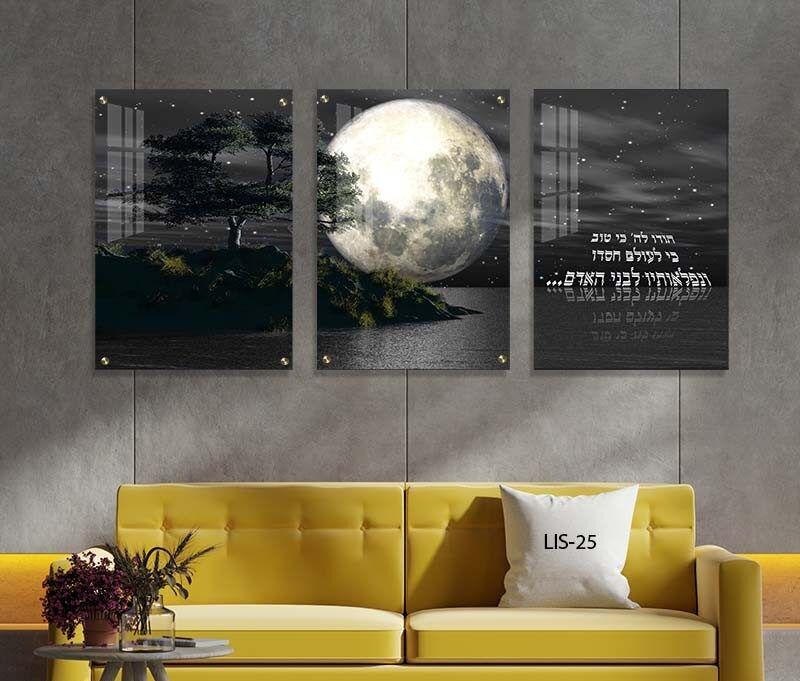 תמונת זכוכית "הודו לה' כי טוב" ברקע ירח – דגם LIS-25