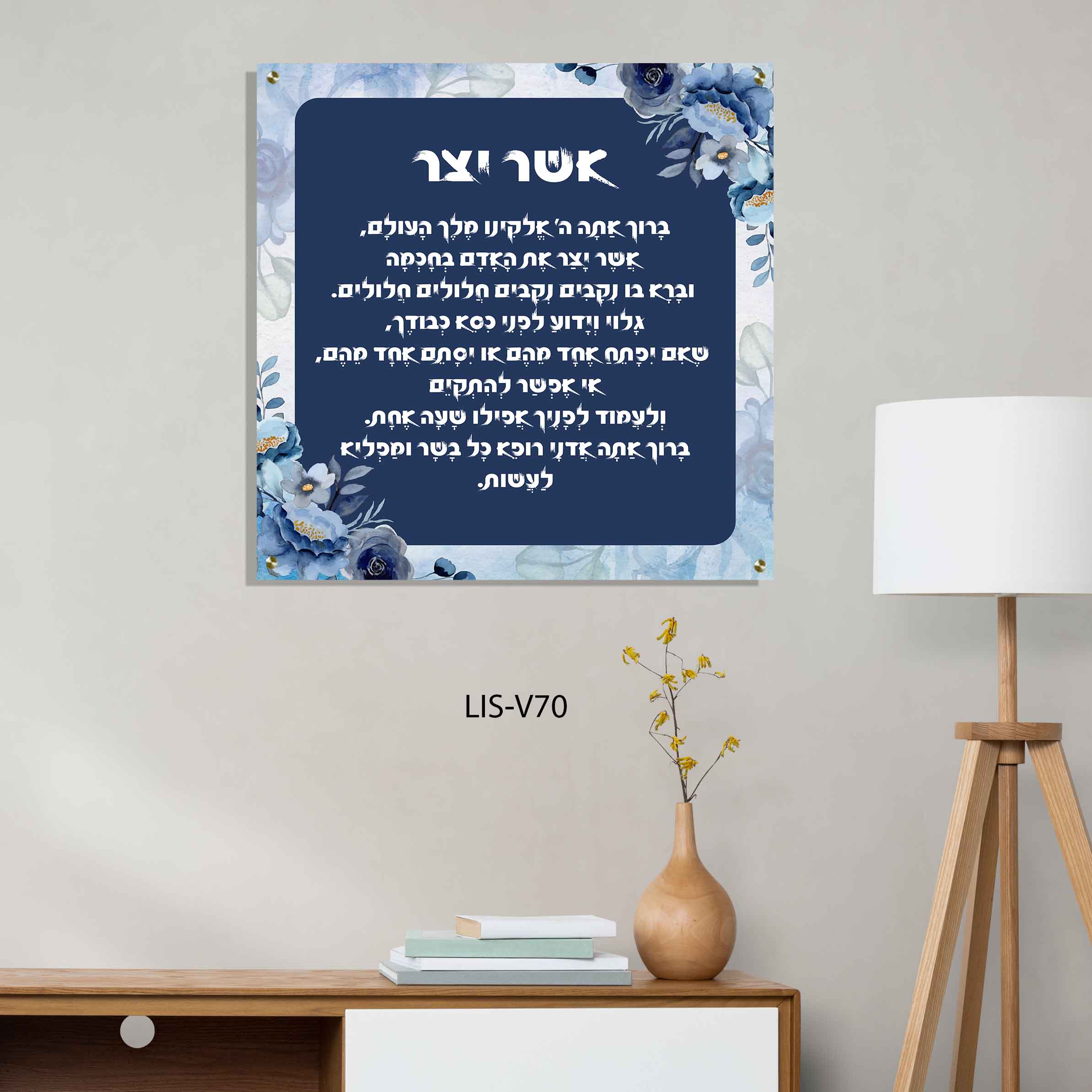 תמונת זכוכית יוקרתית של אשר יצר, בעיצוב צבעוני ועדין שמתאים לכל בית יהודי.