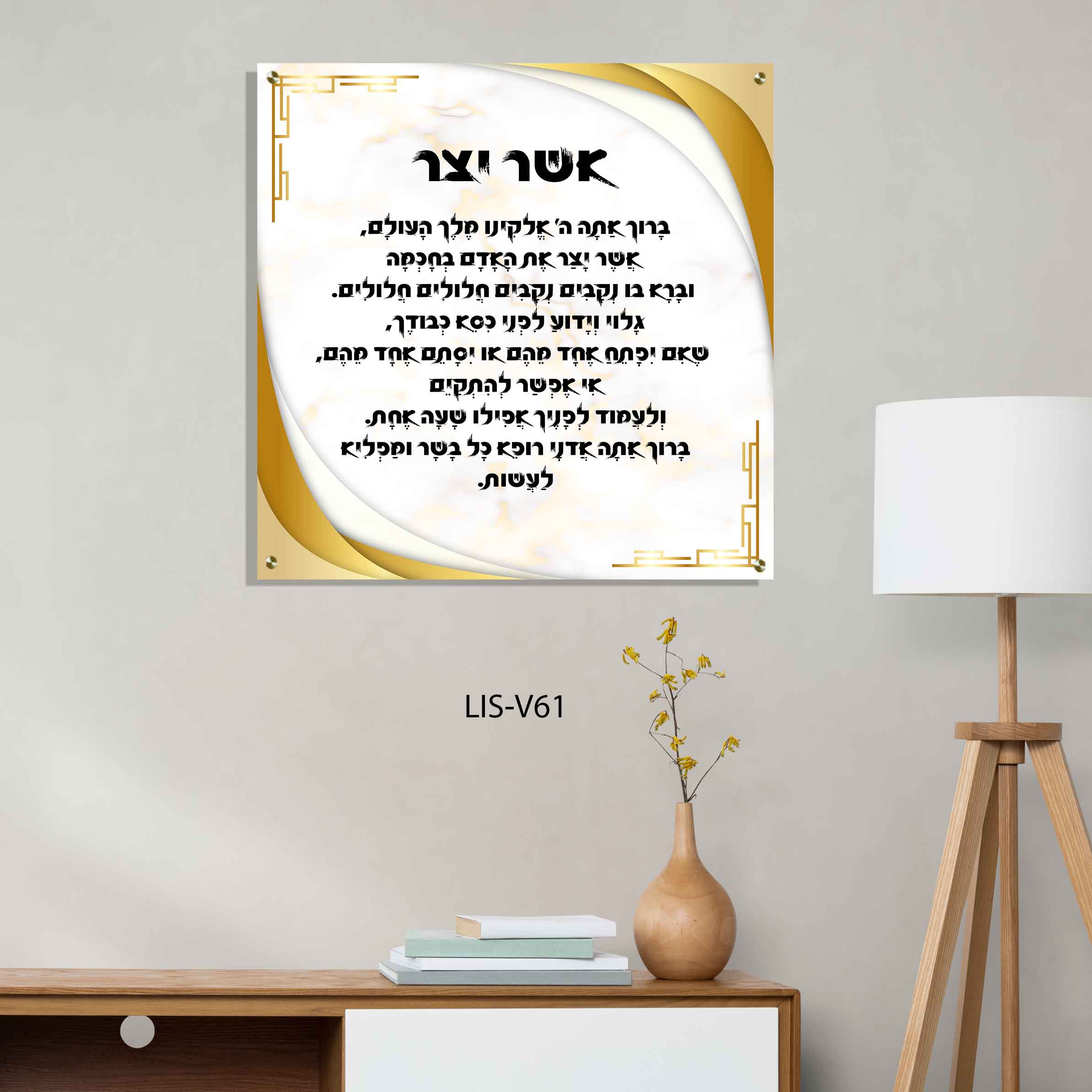 תמונת זכוכית יוקרתית המציגה את נוסח ברכת אשר יצר בעיצוב אלגנטי ומודרני.