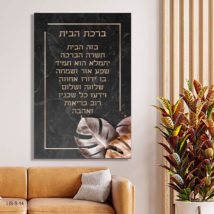 תמונת זכוכית "ברכת הבית" ברקע שחור שיש ומסגרת זהב – דגם LIS-S-14