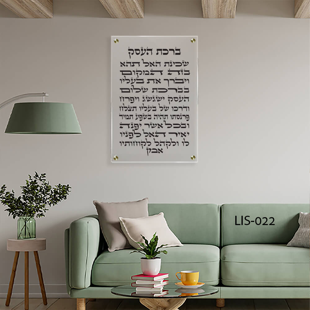 תמונת זכוכית "ברכת העסק" ברקע שקוף – דגם LIS-022