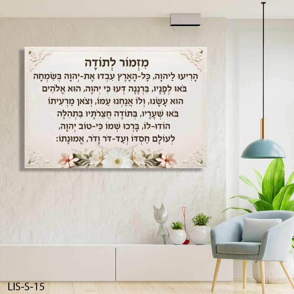 הכניסו אווירה של הודיה, שלווה ואסתטיקה יהודית אל הבית שלכם עם תמונת זכוכית יוקרתית של מזמור לתודה – בעיצוב מעודן וחם.