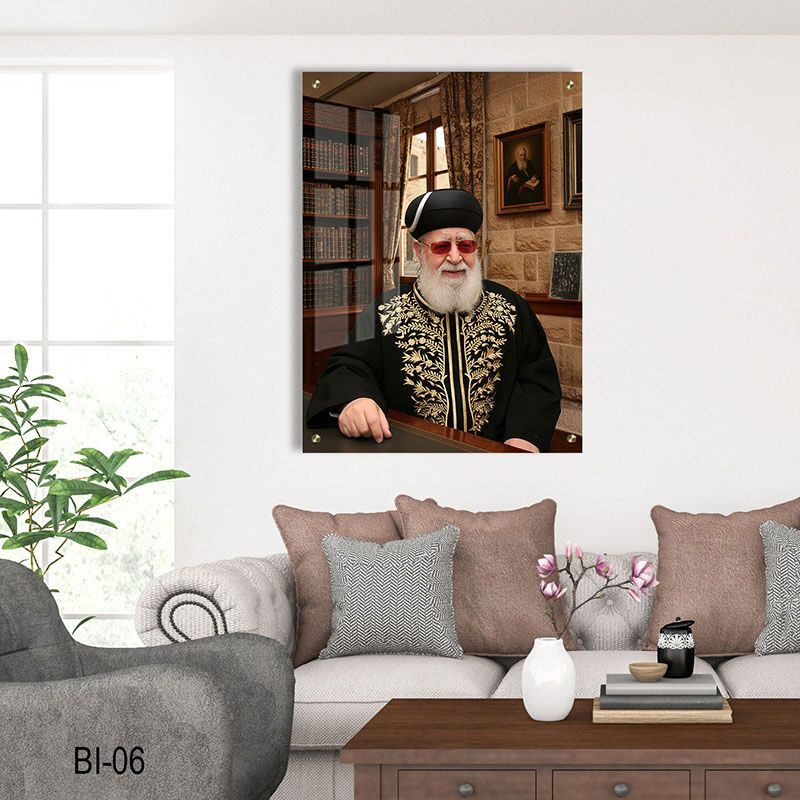 יצירה זו, המשתייכת לקולקציית תמונות צדיקים יוקרתית, מודפסת בסטנדרטים הגבוהים ביותר תוך שימת לב לכל פרט. אנו משתמשים בטכנולוגיית הדפסה על זכוכית (UV) מתקדמת, המעניקה עומק וחדות יוצאי דופן לצבעי הזהב ולגוונים החמים בתמונה. דגם זה (BI-06) מגיע בגימור אקסטרה-קליר נוצץ, המהווה תוספת של כבוד והדר לכל בית כנסת, מוסד תורני, משרד או בית פרטי המבקש להתהדר בדמותו של ענק הרוח.