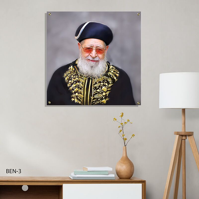 דגם BEN-3 הוא מתנה מכובדת לחנוכת בית, למשפחה שומרת מסורת או לכל מי שרוצה להכניס לביתו תמונת צדיק מרשימה של מרן הרב עובדיה יוסף.