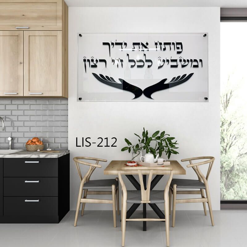 פסוק "פותח את ידיך" מבטא ביטחון באל ושפע אלוקי. כאשר הוא מודפס על זכוכית שקופה בעיצוב מינימליסטי, מתקבל פריט יודאיקה עכשווי המשדר גם מסורת וגם תחכום עיצובי. התוצאה היא תמונה מרשימה ואלגנטית שמתאימה לסלון, פינת לימוד, משרד או כל חלל אחר.